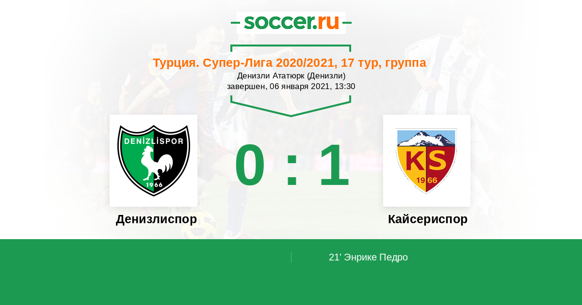 Протокол матча Денизлиспор против Кайсериспор