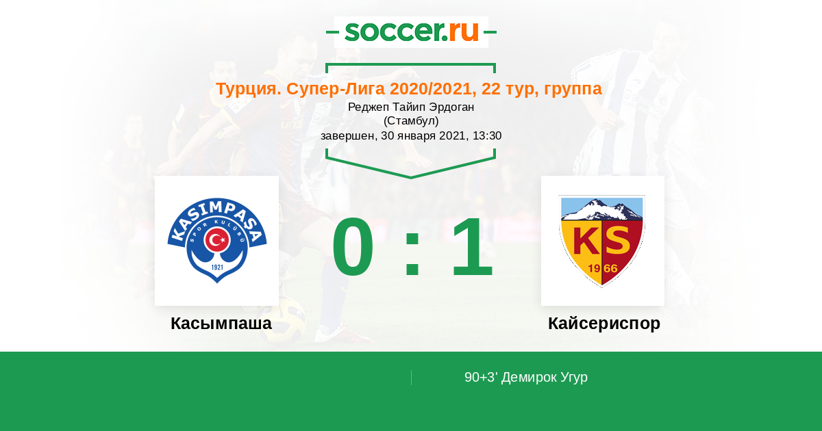 Протокол матча Касымпаша против Кайсериспор
