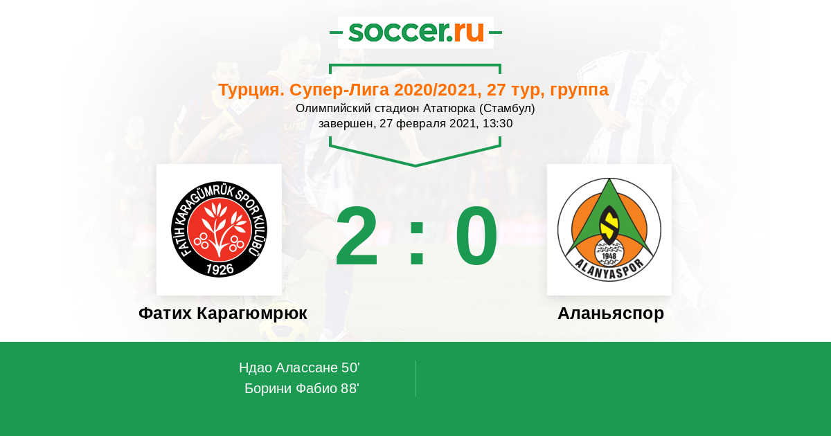 Протокол матча Фатих Карагюмрюк против Аланьяспор