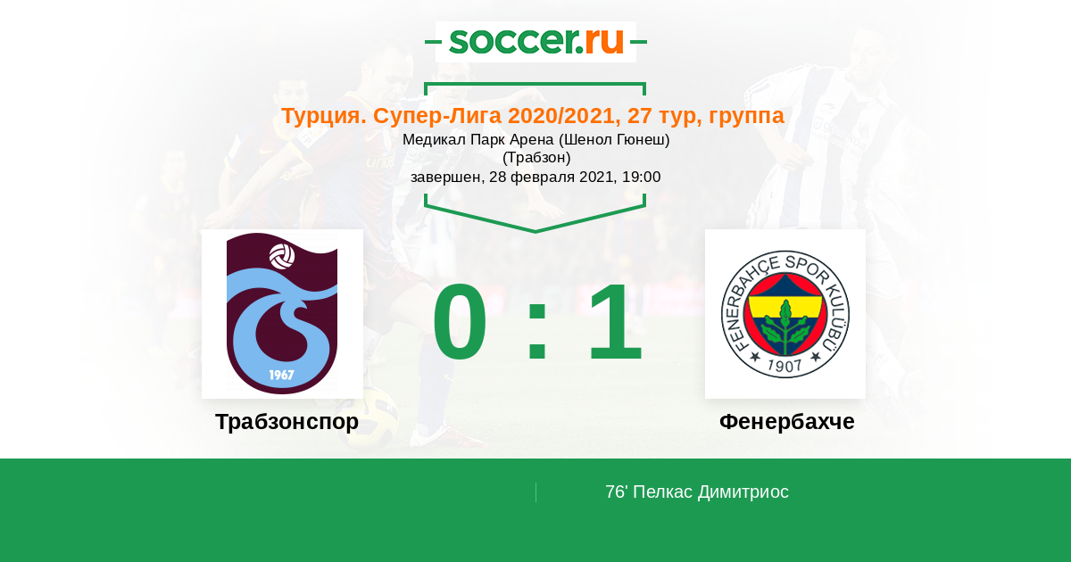 Протокол матча Трабзонспор против Фенербахче
