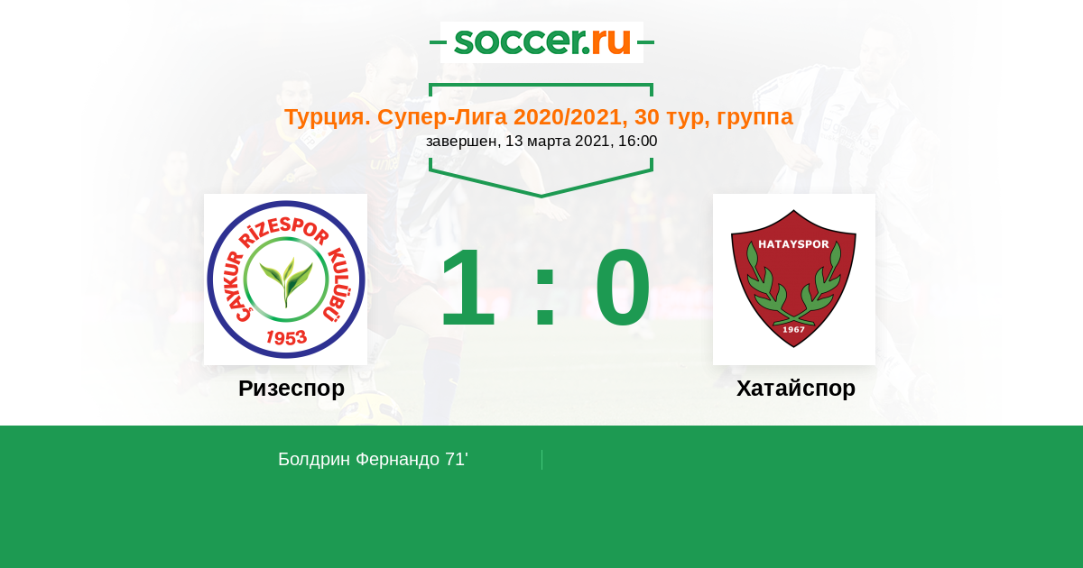 Протокол матча Ризеспор против Хатайспор