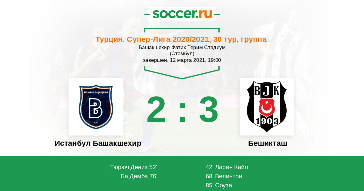 Протокол матча Истанбул Башакшехир против Бешикташ