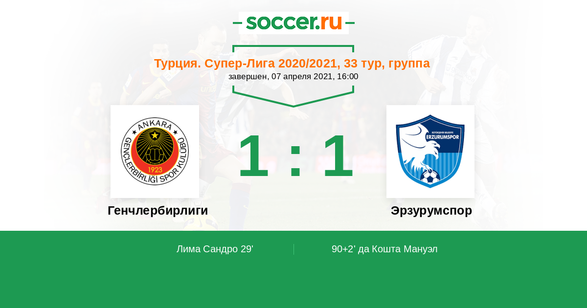 Гол90+2' (1:1) да Кошта Мануэл (27) (Каракуллукчу Олтан (61))