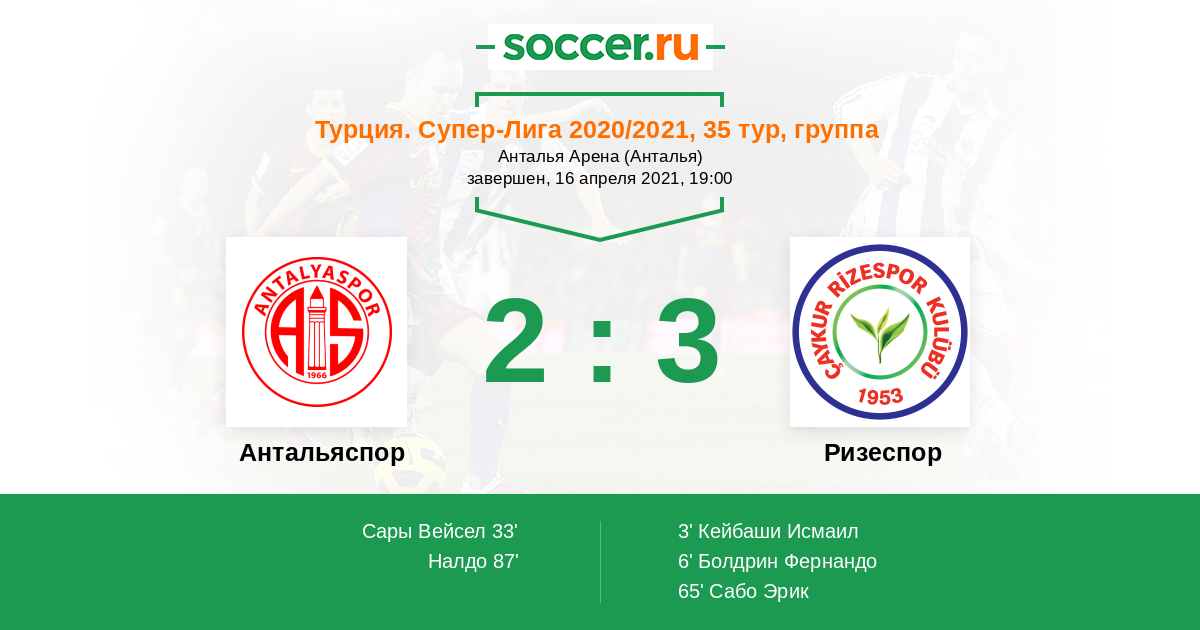 33' (1:2) Сары Вейсел (89) (Альбайрак Эрен (6))