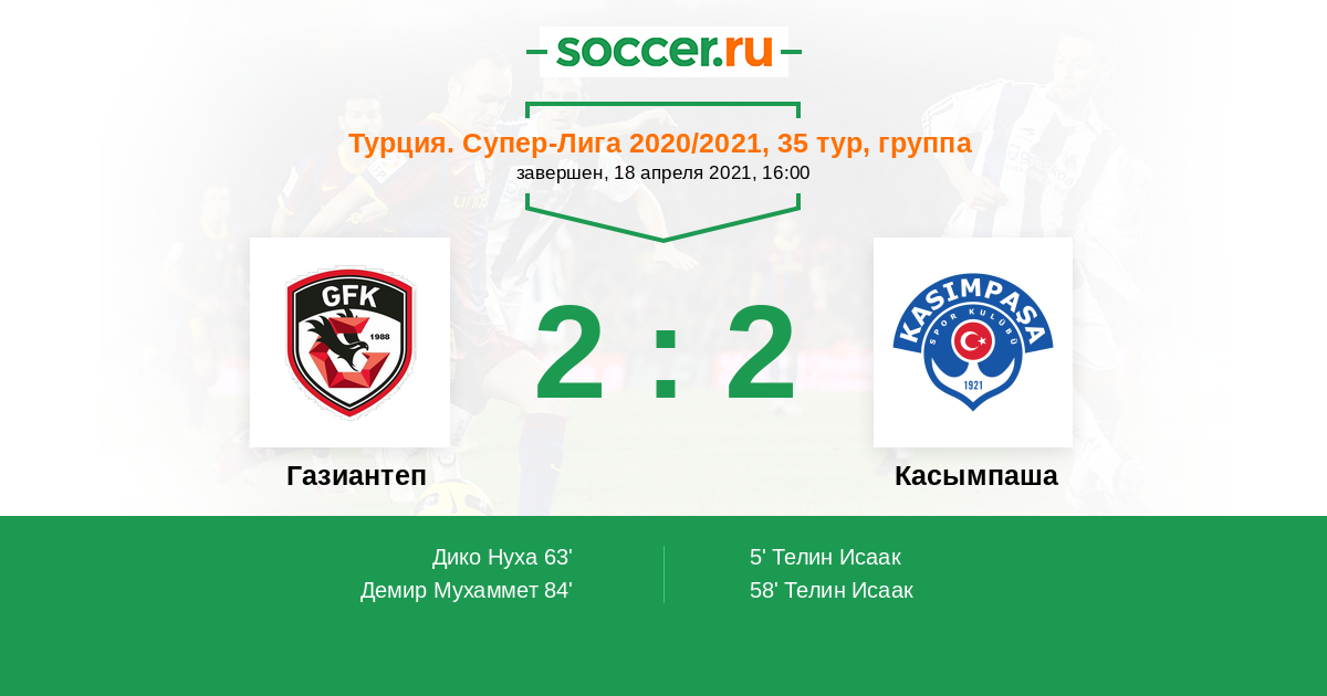 Протокол матча Газиантеп против Касымпаша