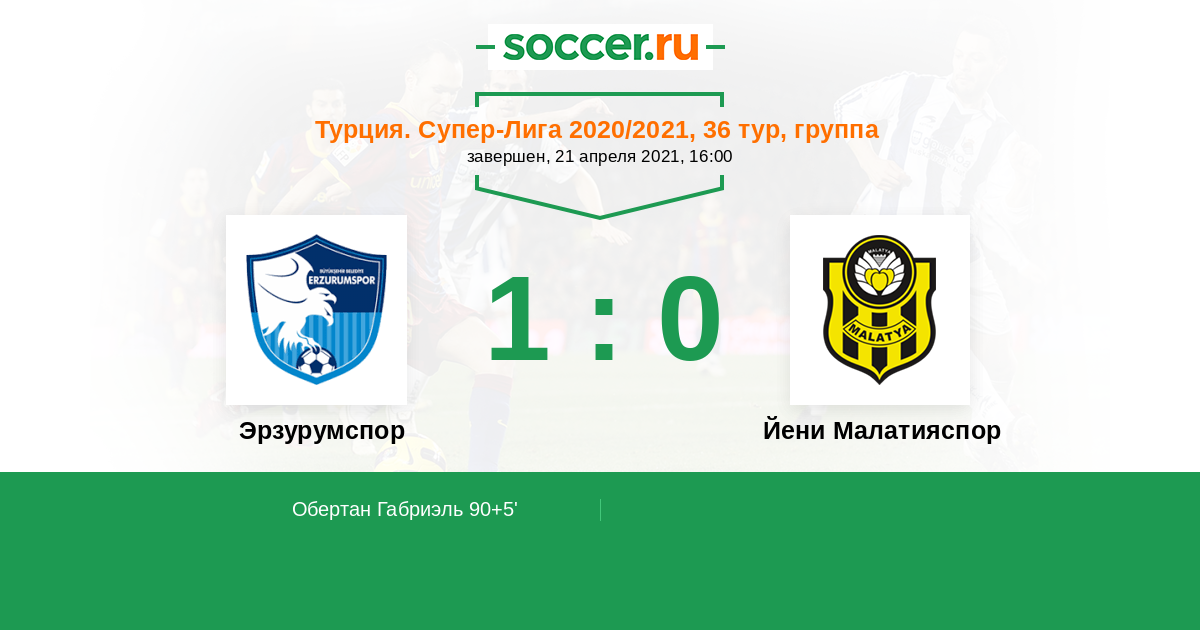 Протокол матча Эрзурумспор против Йени Малатияспор