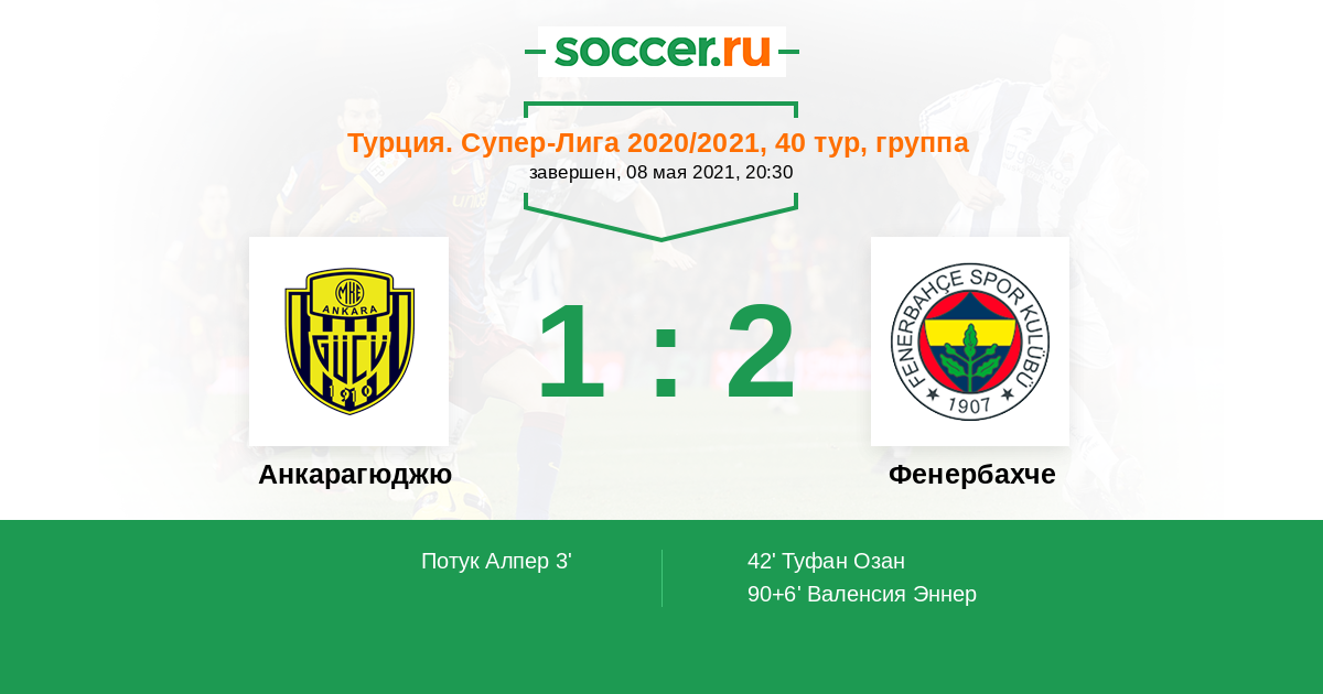 Протокол матча Анкарагюджю против Фенербахче