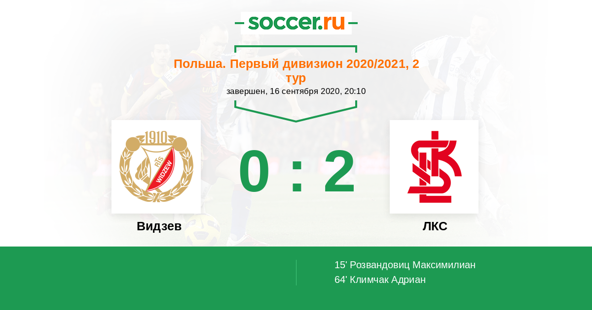 Протокол матча Видзев против ЛКС