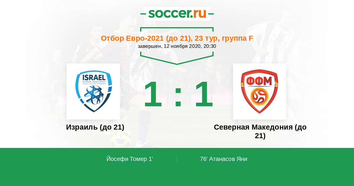 Протокол матча Израиль (до 21) против Северная Македония (до 21)