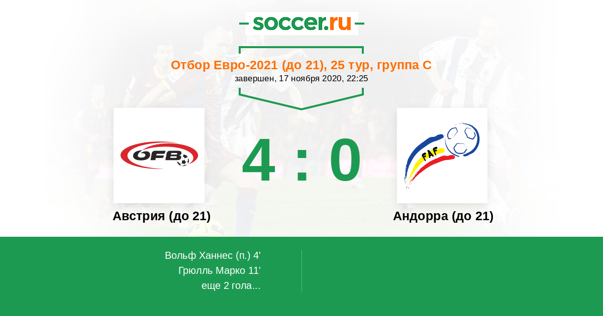 Протокол матча Австрия (до 21) против Андорра (до 21)