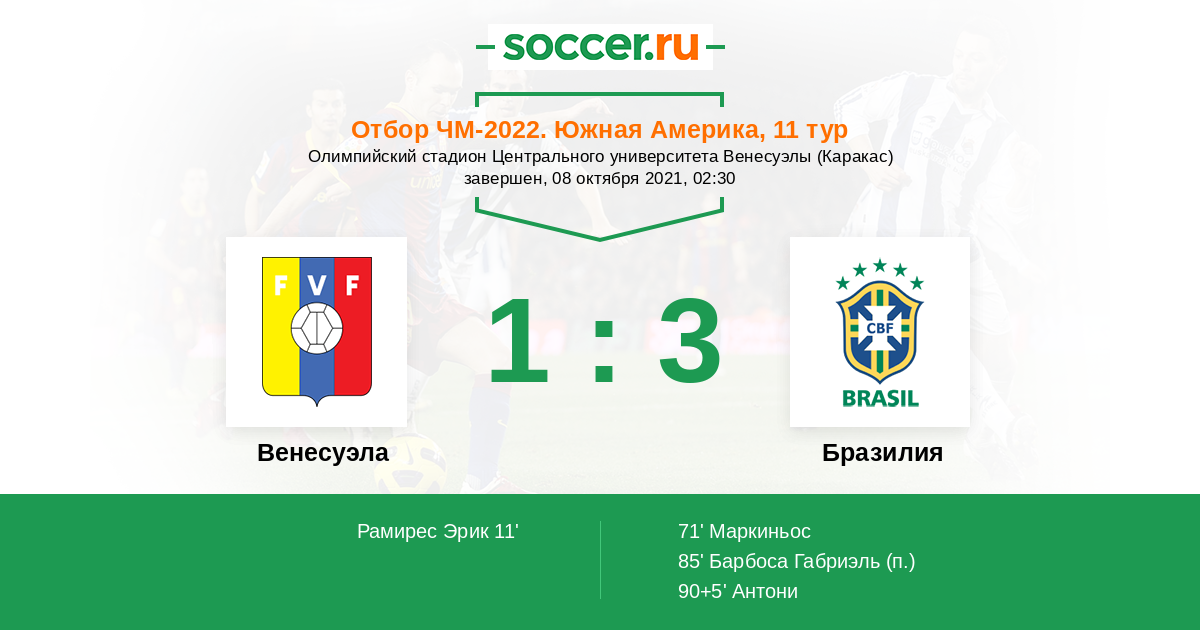Несмотря на такие потери, сильнее они скажутся именно на венесуэльцах, ведь аутсайдеры отбора не обладают такой качественной заявкой как гости, которые запросто могут заменить недоступных звёзд Габриэлем Жезусом, Габиголом, Винисиусом и ко. Конечно, без игроков основы вряд ли бразильцы устроят разгром, но победа будет уверенной.