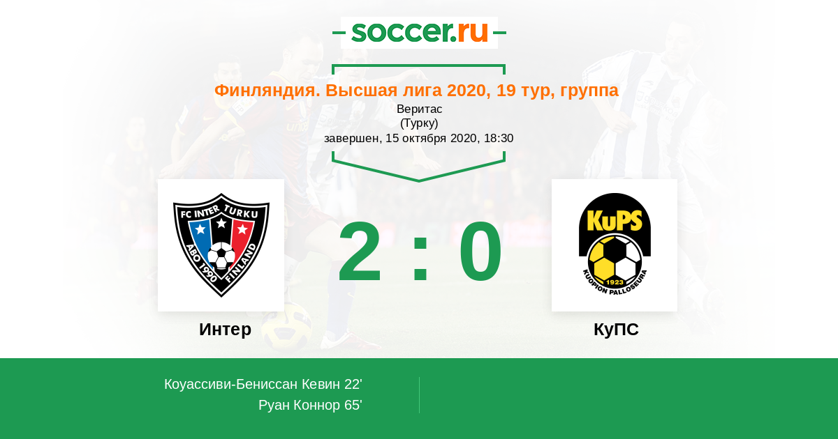 Протокол матча Интер против КуПС