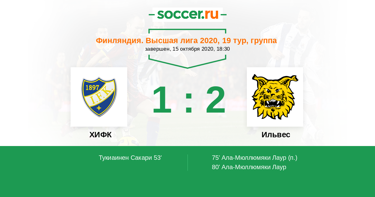Протокол матча ХИФК против Ильвес
