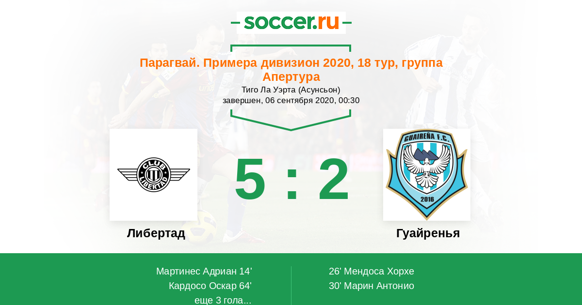 Протокол матча Либертад против Гуайренья