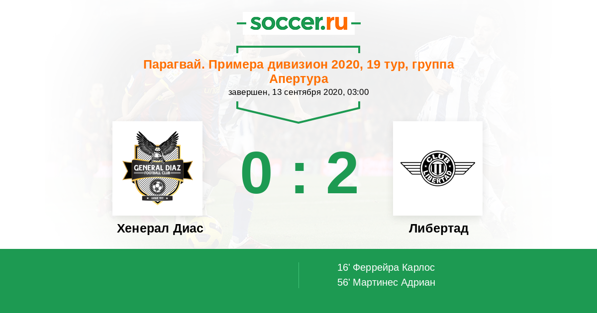 16' (0:1) Феррейра Карлос (18) (Вильяльба Эктор Даниэль (23))