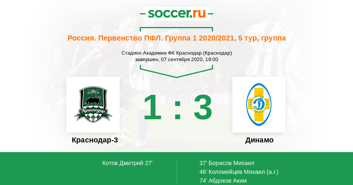 Протокол матча Краснодар-3 против Динамо Ставрополь