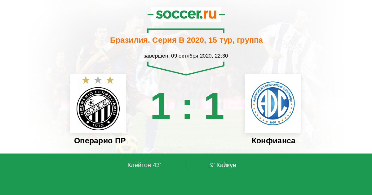 Протокол матча Операрио ПР против Конфианса