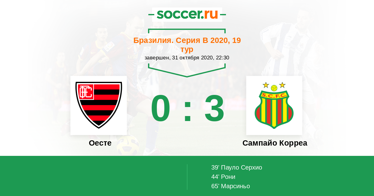Протокол матча Оесте против Сампайо Корреа