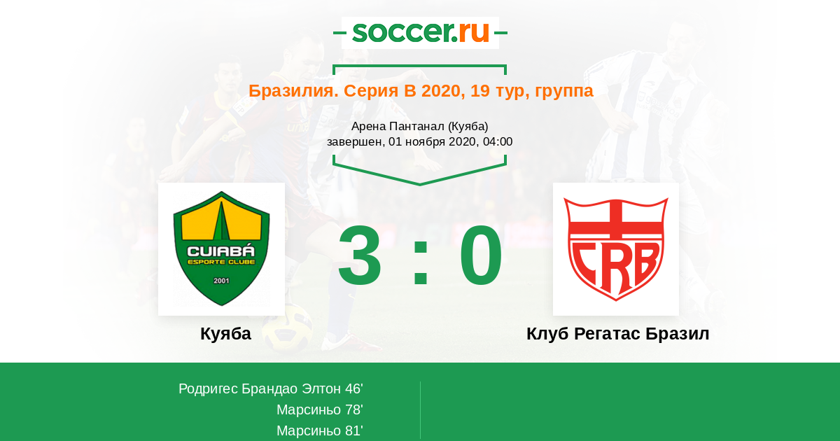 Протокол матча Куяба против Клуб Регатас Бразил