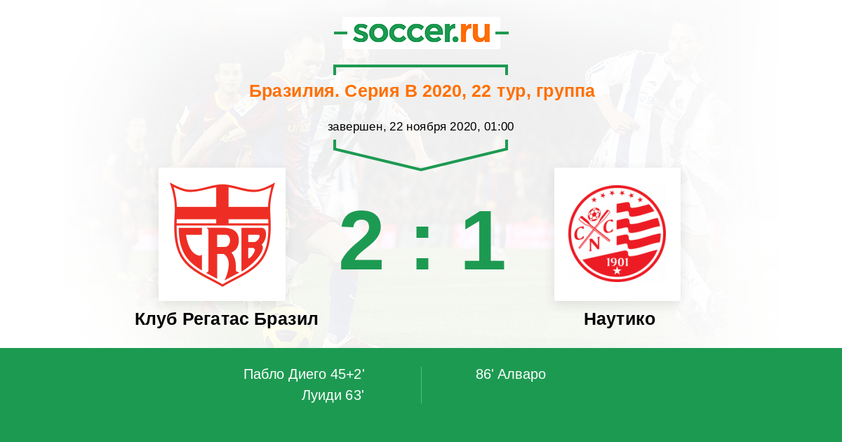 45+2' (1:0) Пабло Диего (9) (Региналдо (2))