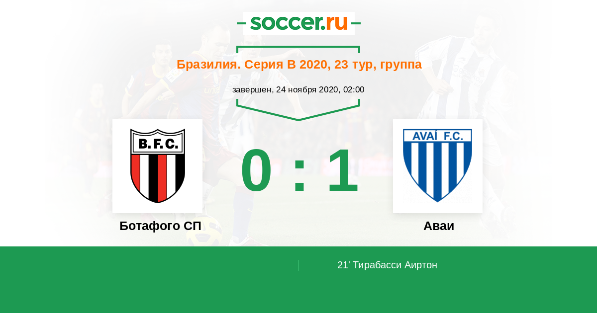 21' (0:1) Тирабасси Аиртон (80) (Алемао (43))