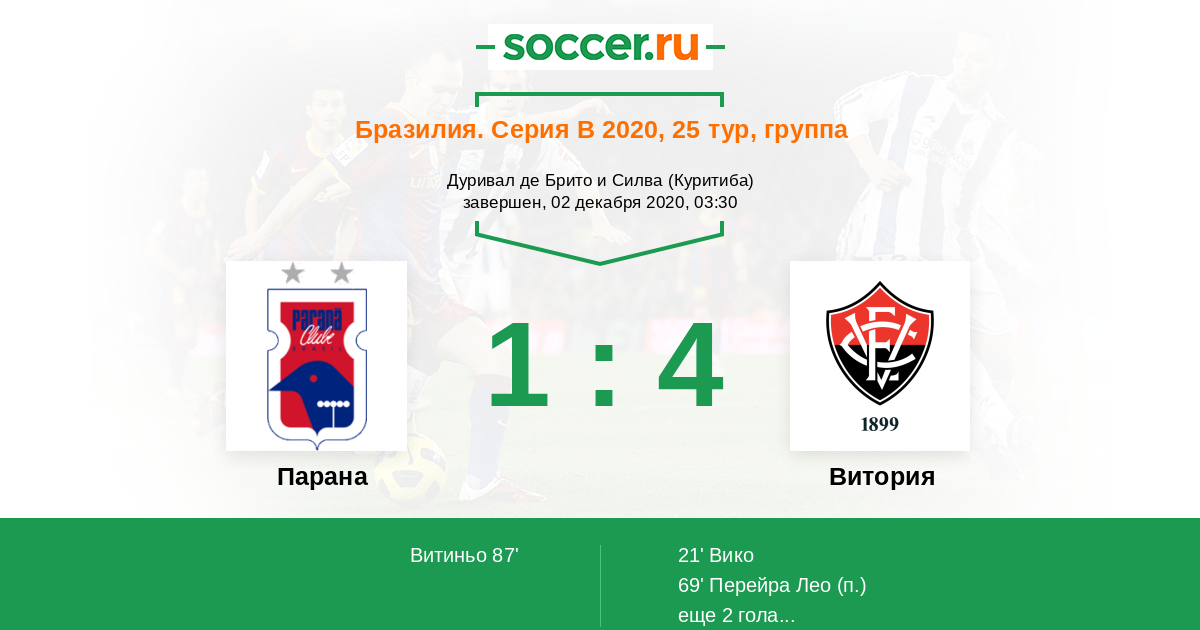 Протокол матча Парана против Витория