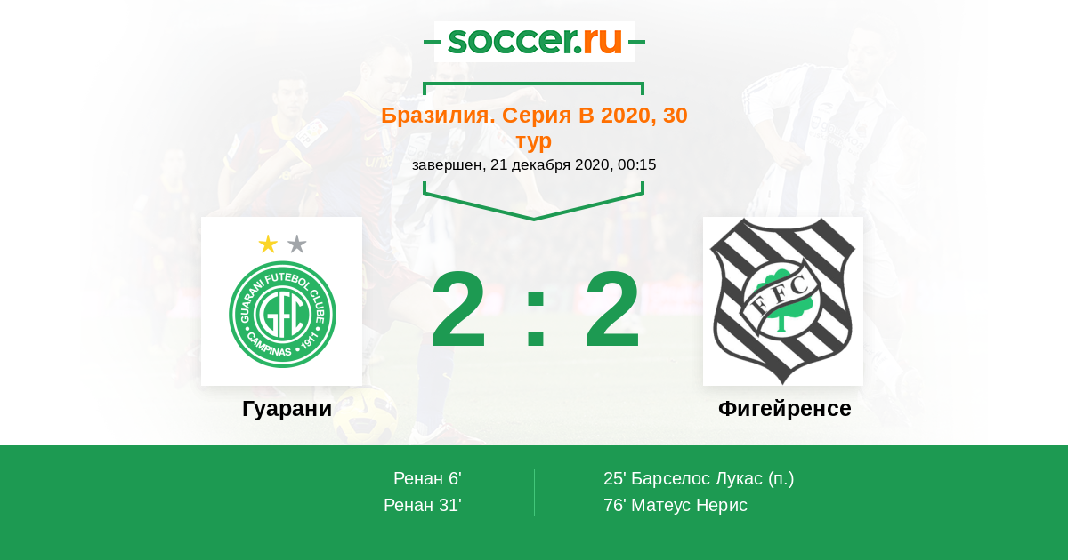 Протокол матча Гуарани против Фигейренсе