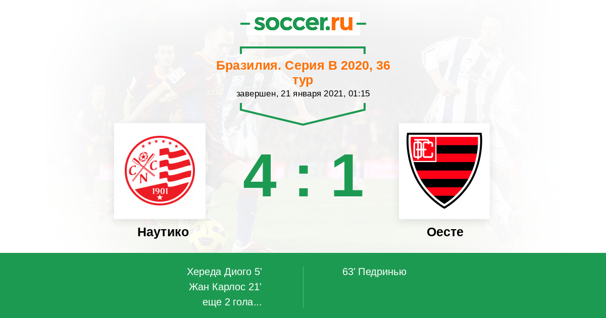21' (2:0) Жан Карлос (10) (Эрик (33))