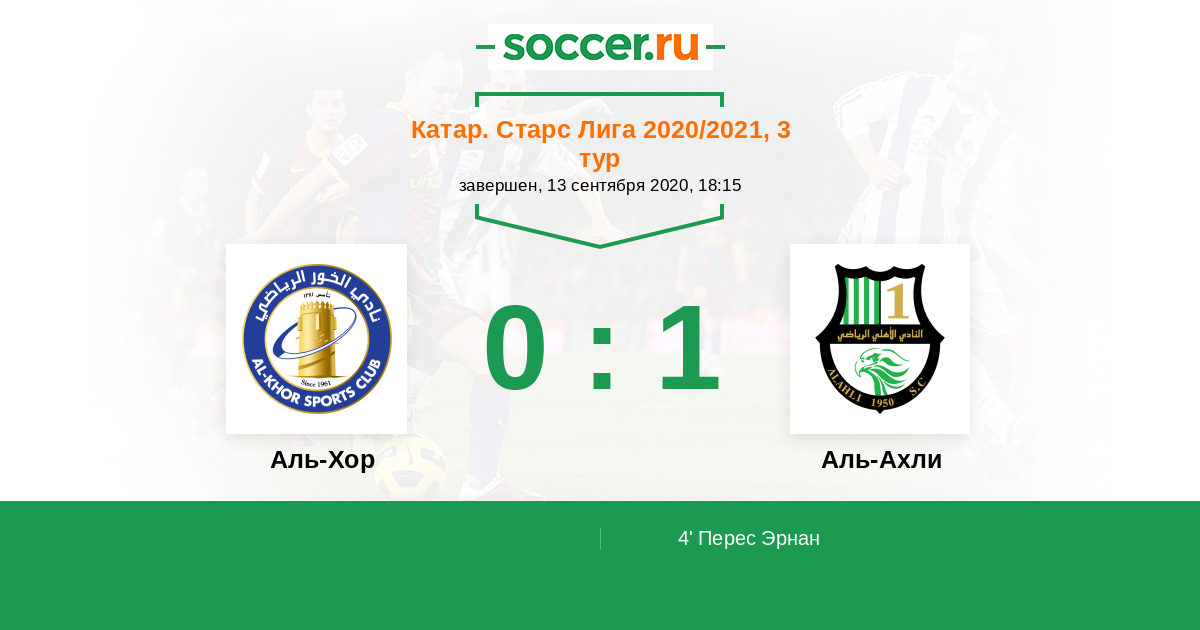 Протокол матча Аль-Хор против Аль-Ахли