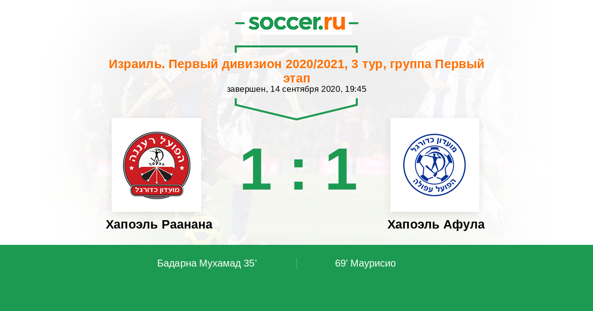 Протокол матча Хапоэль Раанана против Хапоэль Афула