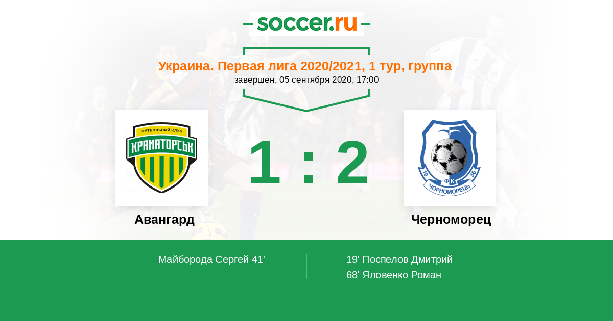 Протокол матча Авангард против Черноморец
