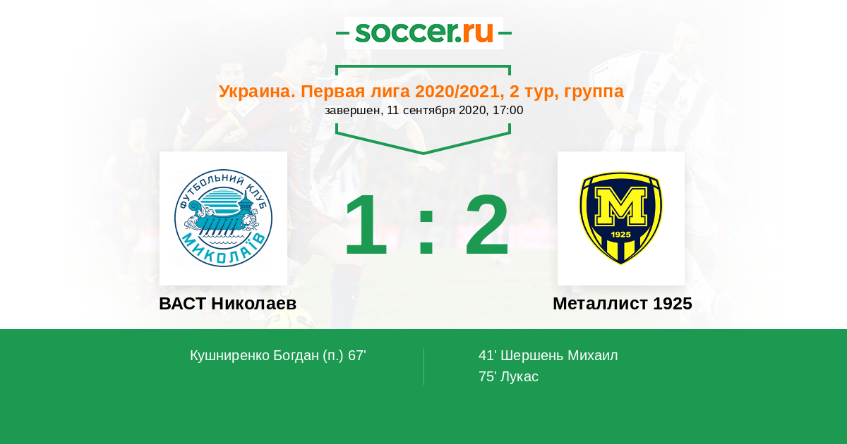 Протокол матча ВАСТ Николаев против Металлист 1925
