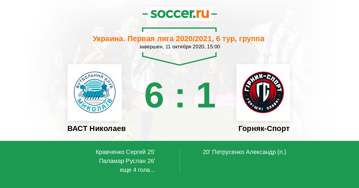 Протокол матча ВАСТ Николаев против Горняк-Спорт