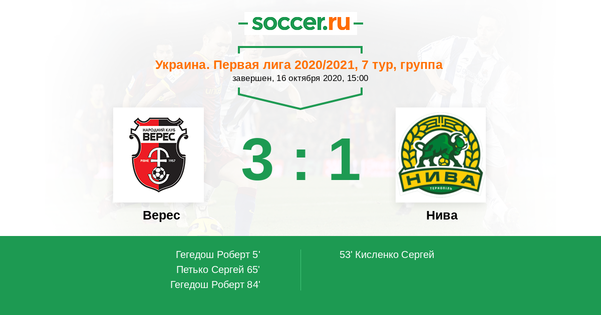 Протокол матча Верес против Нива