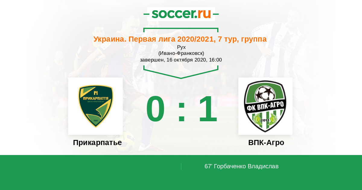 Протокол матча Прикарпатье против ВПК-Агро