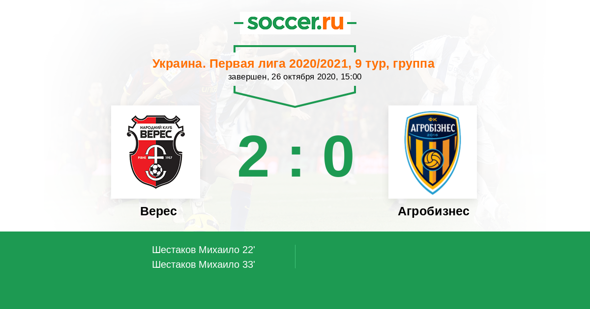 Протокол матча Верес против Агробизнес