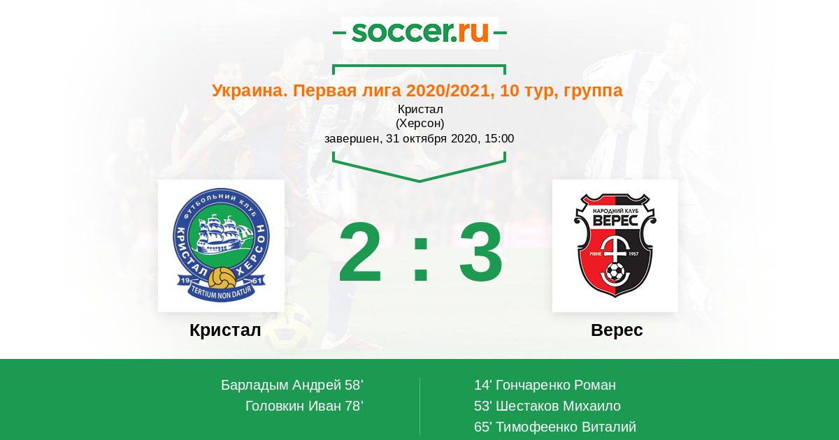 Протокол матча Кристал против Верес