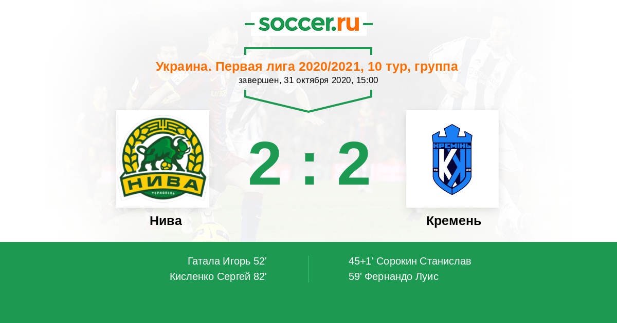 Протокол матча Нива против Кремень