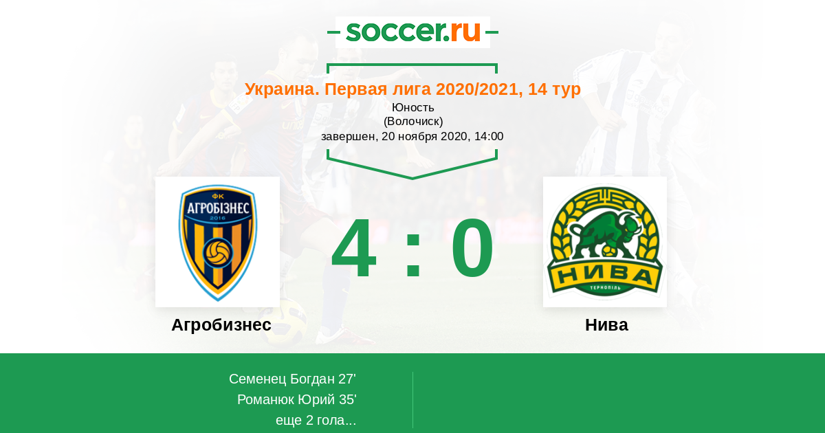 Протокол матча Агробизнес против Нива