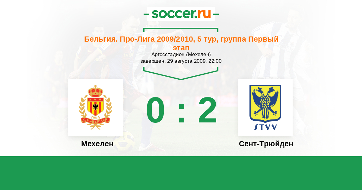 Бельгия. Про-Лига 28.08.2010 Мехелен Логотип футбольный клуб Мехелен 0:0 Логотип футбольный клуб Сент-Трюйден (Синт-Трёйден) Сент-Трюйден