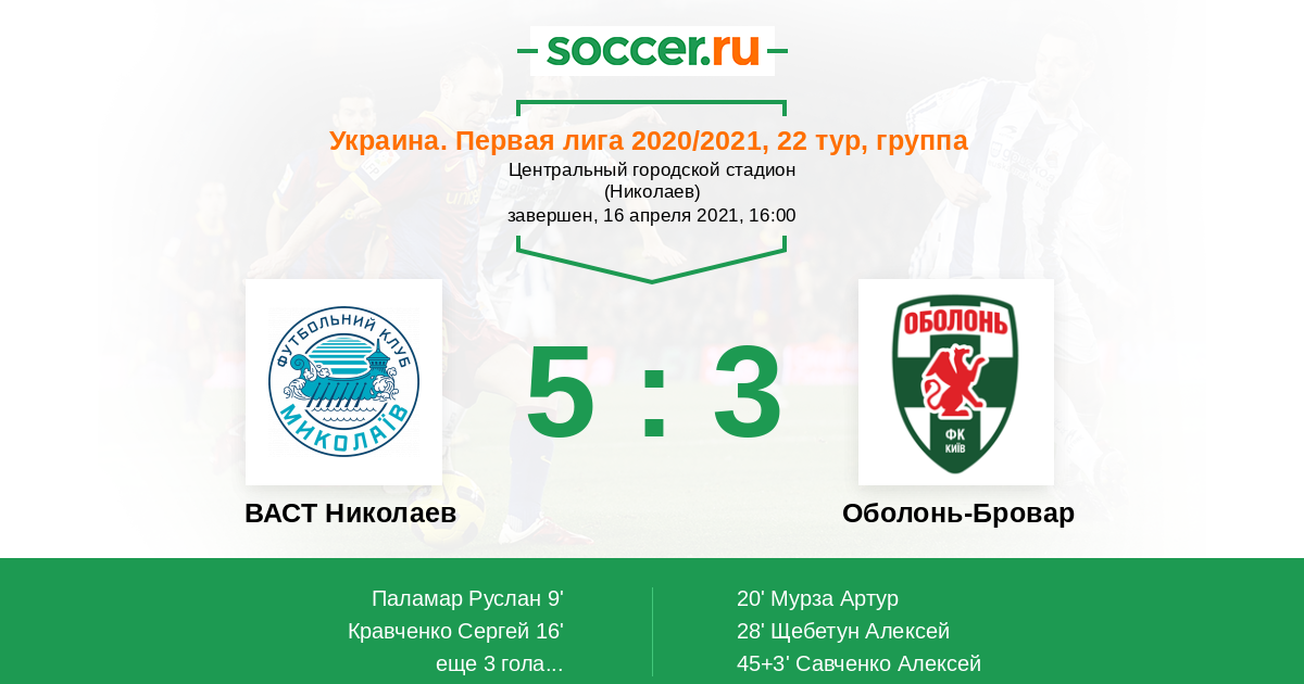 Протокол матча ВАСТ Николаев против Оболонь-Бровар