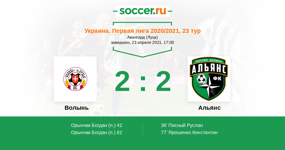 Протокол матча Волынь против Альянс