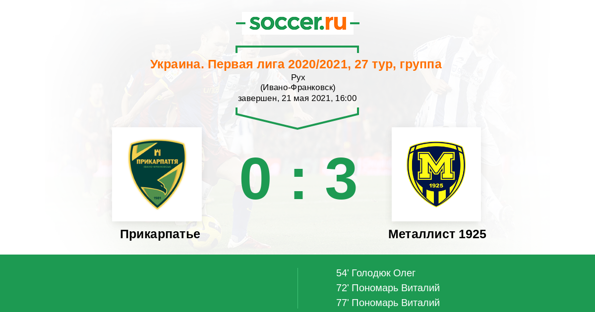 Протокол матча Прикарпатье против Металлист 1925