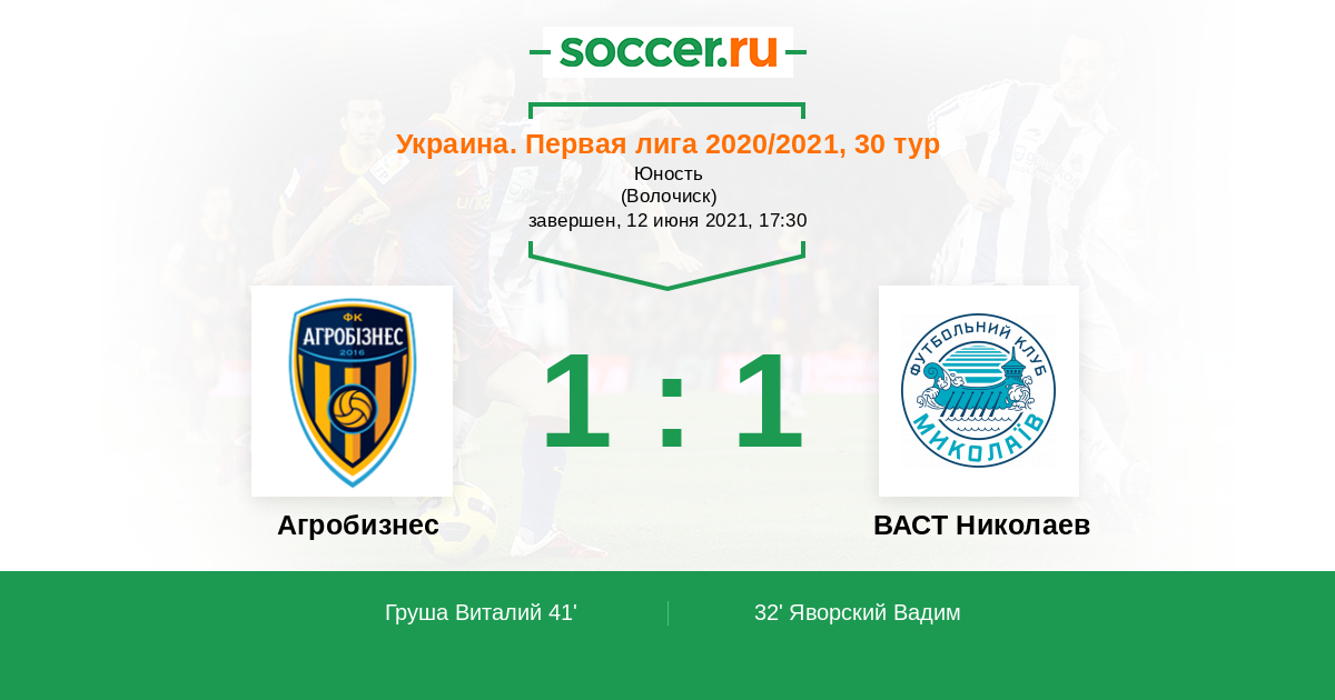 Протокол матча Агробизнес против ВАСТ Николаев