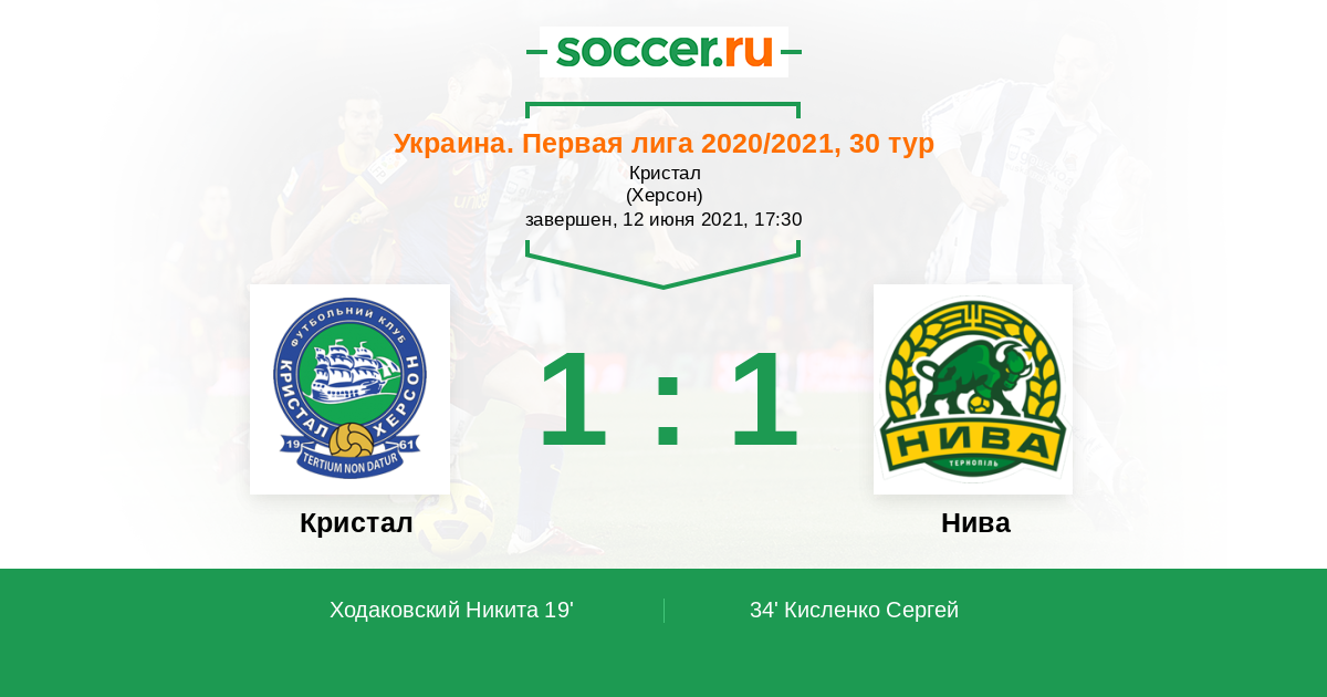 Протокол матча Кристал против Нива