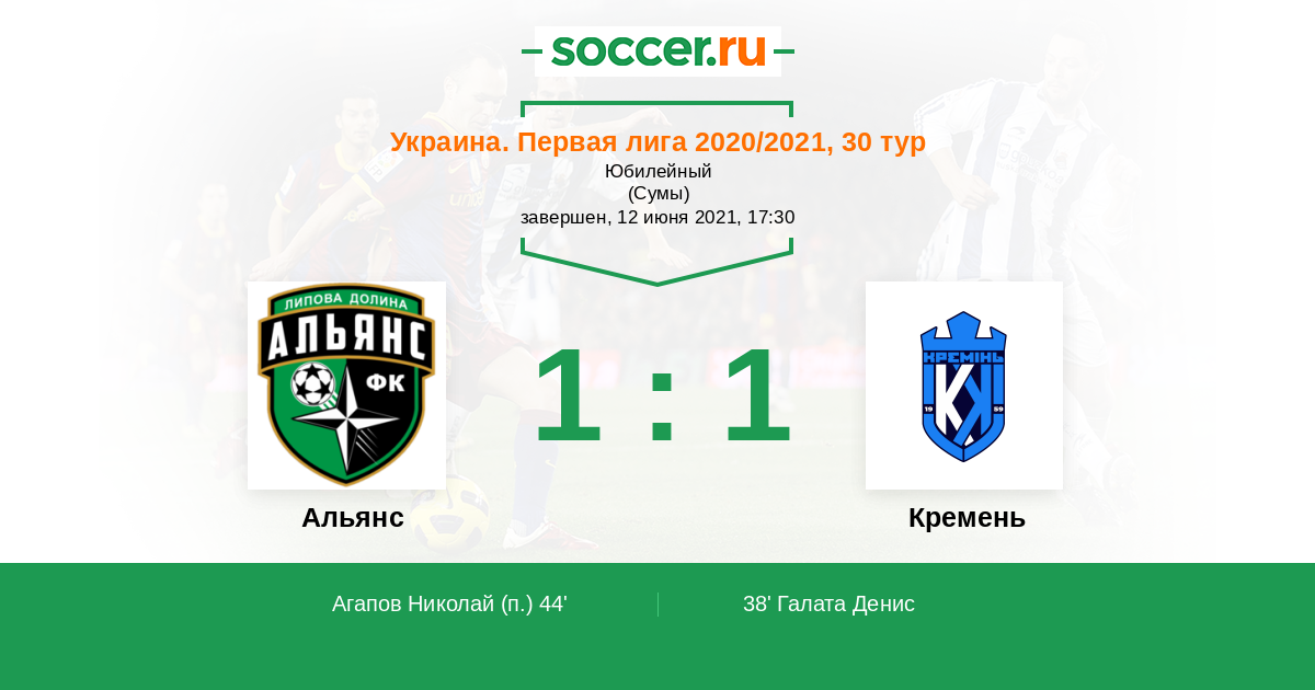 Протокол матча Альянс против Кремень