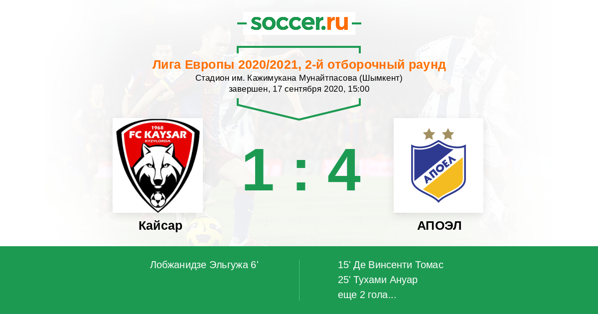 Протокол матча Кайсар против АПОЭЛ