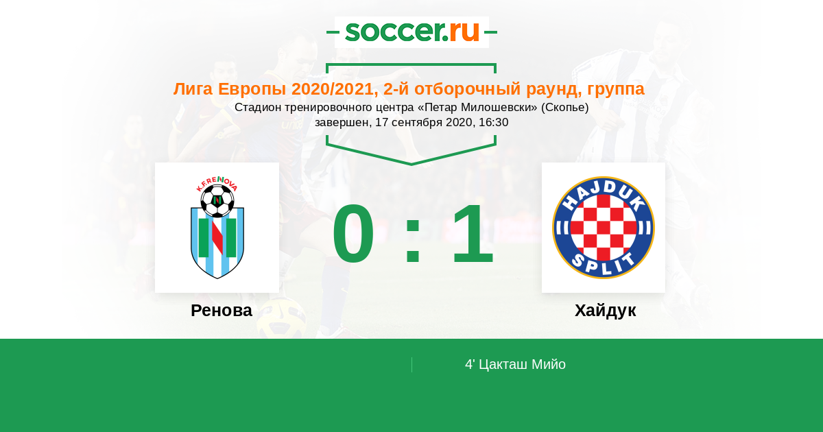 Протокол матча Ренова против Хайдук