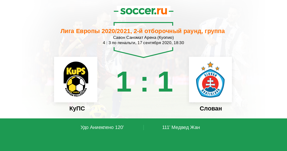 Протокол матча КуПС против Слован