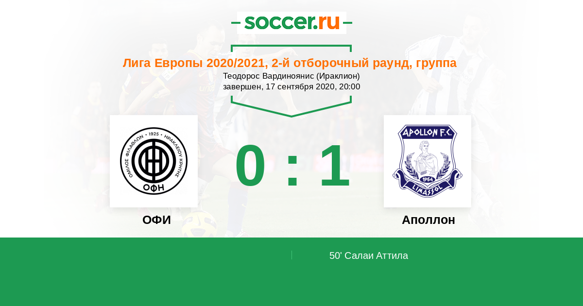 Протокол матча ОФИ против Аполлон